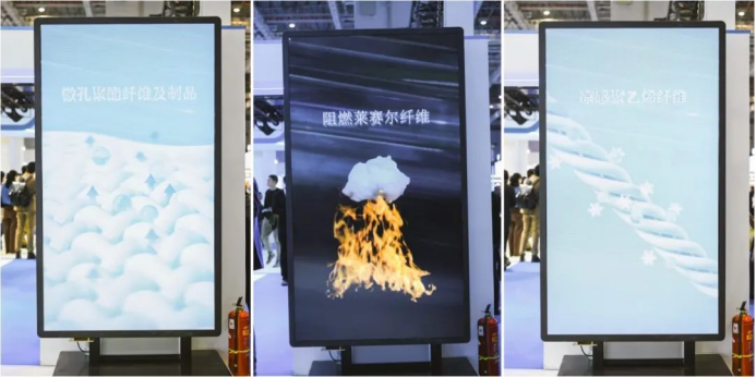 雙屏觸控聯動一體機以“一屏指引,一屏聯動”的交互模式,動態呈現從纖維研發到終端產品的全產業鏈實景。