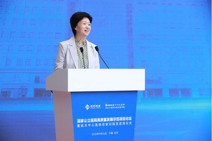 9月26日,國家公立醫院高質量發展示范項目論壇暨通用技術集團所屬航天中心醫院蘇家坨院區啟用儀式在京舉行。通用技術集團董事長、黨組書記于旭波,北京市海淀區委書記、中關村科學城黨工委書記張革,北京市醫療保障局黨組成員、副局長顏冰出席活動并致辭。集團董事、黨組副書記馬可輝,海淀區委常委、常務副區長岳立,海淀區委常委、區政法委書記、區委辦主任程培衡,北京市醫保中心主任楊菁,海淀區政府黨組成員,區政府辦黨組書記、主任劉釗,海淀區衛生健康委、市場監管局、醫療保障局、蘇家坨鎮政府、海融達公司主要負責人出席活動。