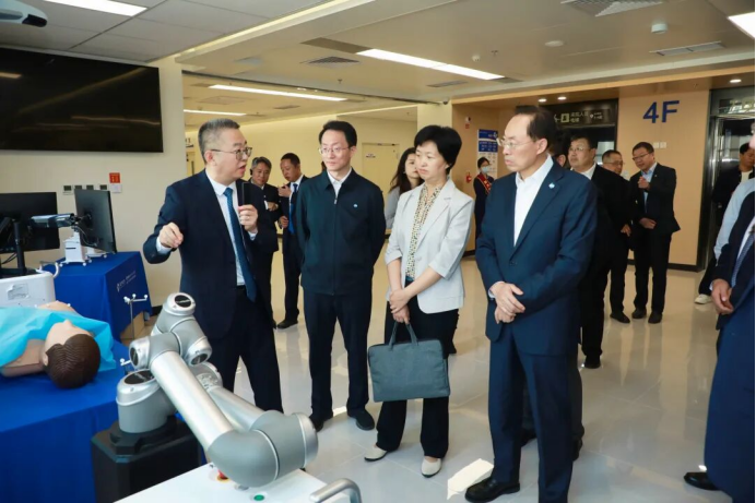 與會嘉賓實地參觀了通用技術集團所屬航天中心醫院蘇家坨院區智慧醫療體驗區、急診科、神經內科、機器人展廳等區域。寬敞舒適的就診環境、科學合理的功能布局、先進完備的診療設施,智慧診療及智能機器人的創新布局和應用成果,獲得了廣泛肯定。